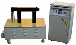 4、時(shí)間到或溫度到,主回路斷開(kāi),完成退磁動(dòng)作,撥動(dòng)升降手柄,轉(zhuǎn)動(dòng)軛鐵取下工件安裝。